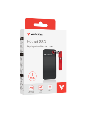 SSD portabil VERBATIM Pocket 1 TB, USB-C 3.2 Gen 2, Black/Red