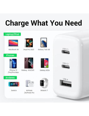 Incarcator retea UGREEN 90496, 65W, 2 x USB-C, 1 x USB-A, White