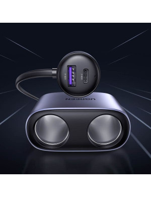 Incarcator auto UGREEN CD252, splitter 2 prize pentru bricheta, 1 x USB, 1 x USB Type-C, 120W, gri